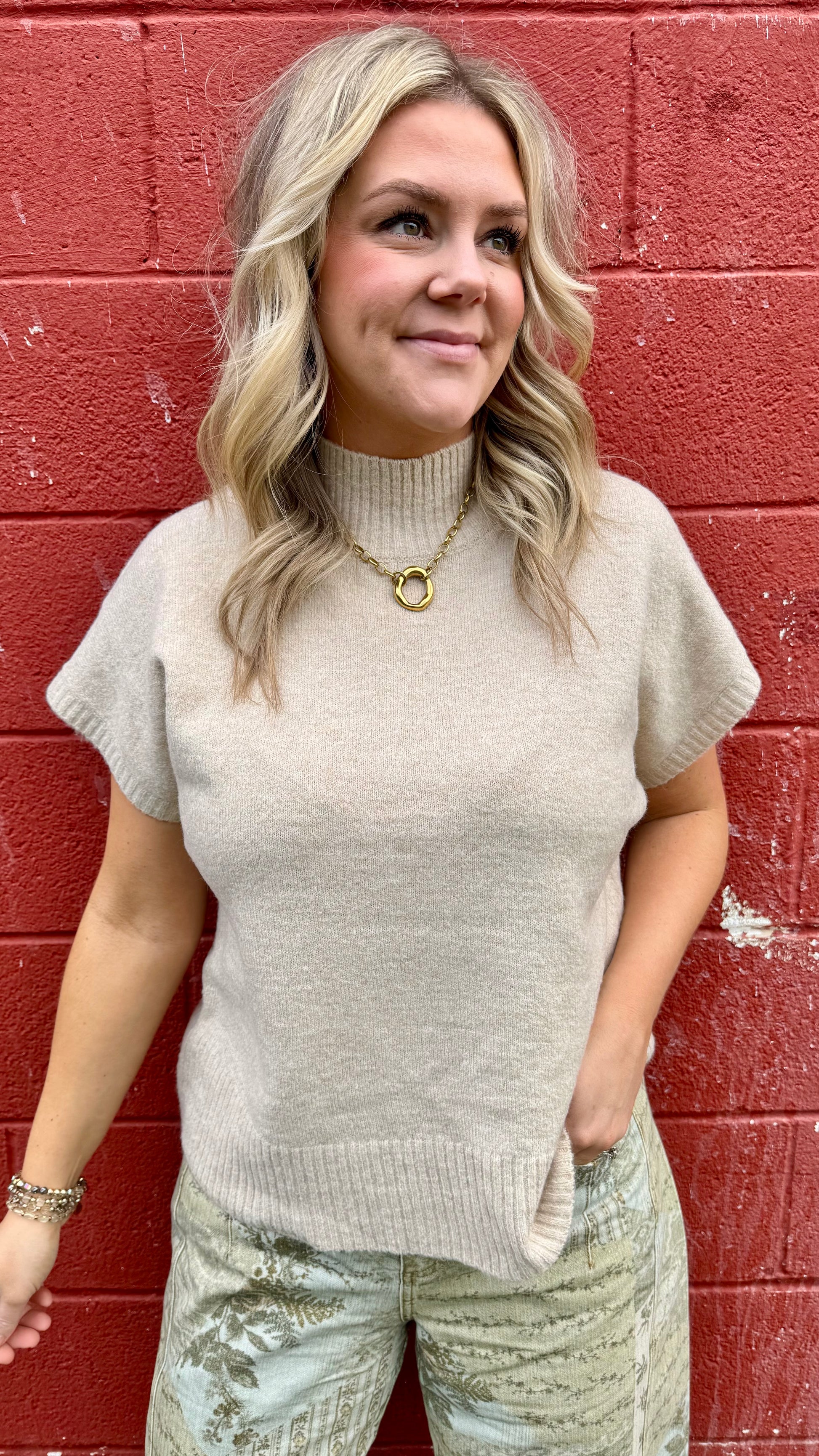 MOCK NECK, EXTENDED SHORT SLEEVE, SOLID PULLOVER SWEATER VEST