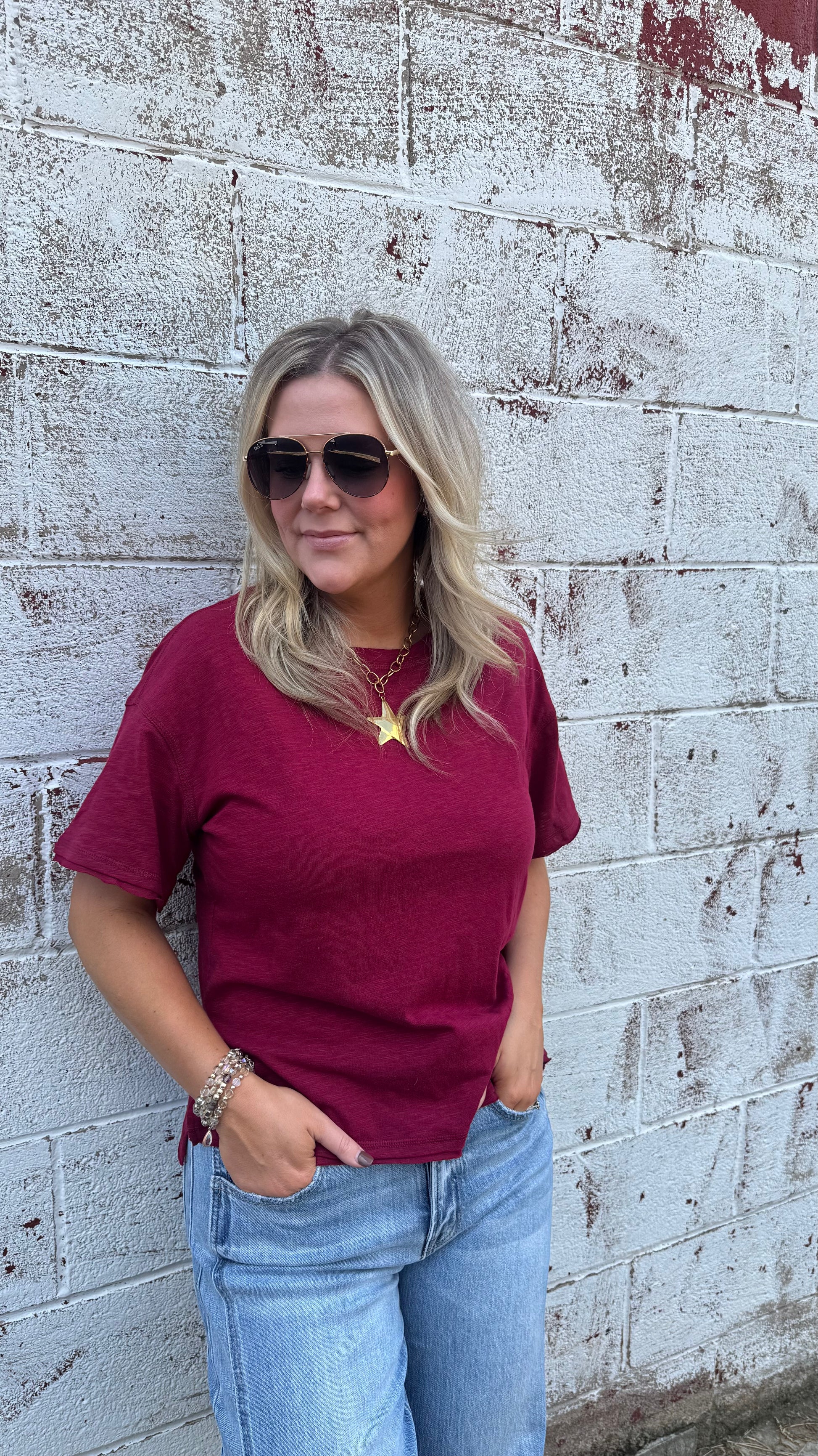 COTTON SLUB SHORT SLEEVE TEE -SIDE SLITS TOTAL BODY LENGTH: 22.5", BUST: 40" approx.